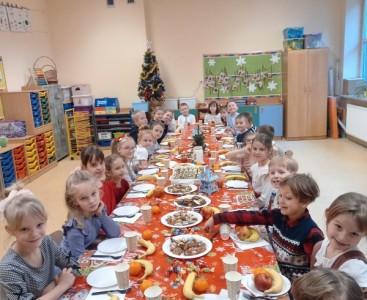 Spotkanie odbyło się w wyjątkowej, świątecznej atmosferze. Uczniowie wspólnie udekorowali salę, przygotowali tradycyjny stół wigilijny oraz podzielili się opłatkiem, składając sobie życzenia.